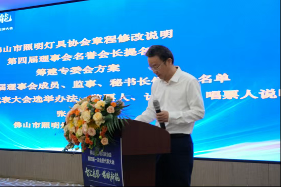 佛山市照明灯具协会秘书长张华对章程修改说明、名誉会长提名、第四届理事会、监事、秘书长候选人名单、专委会组建方案、选举办法、监票人、计票人、唱票人说明等议案作出汇报并请在场会员企业审议。