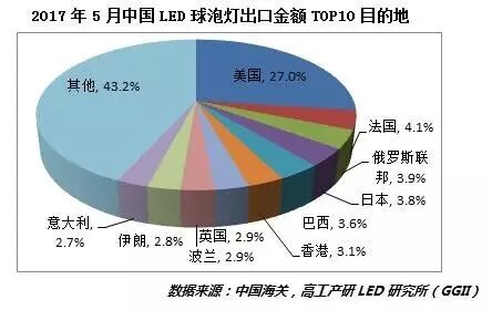 GGII: 5月LED球泡灯出口2.78亿美元,较上月增长7%!