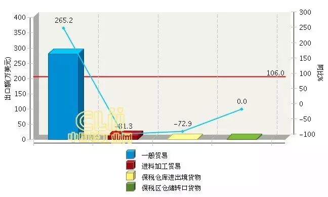 2016年1月~9月,全国电光源零件行业对荷兰完成累计出口额293.92万美元,同比增长106.00%。其中,一般贸易完成累计出口额280.28万美元(占95.36%),同比增长265.15%;进料加工贸易完成累计出口额11.59万美元(占3.94%),同比增长-81.32%;保税仓库进出境货物完成累计出口额1.05万美元(占0.36%),同比增长-72.87%;保税区仓储转口货物完成累计出口额1万美元(占0.34%),同比增长0%。