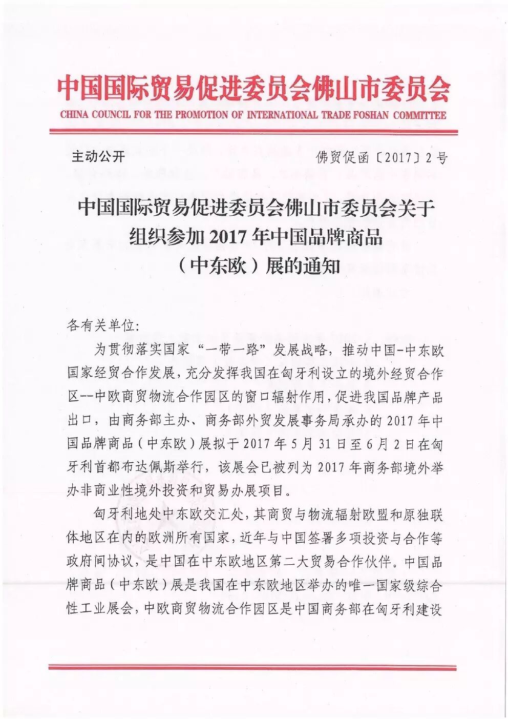 关于组织参加2017年中国品牌商品(中东欧)展的通知