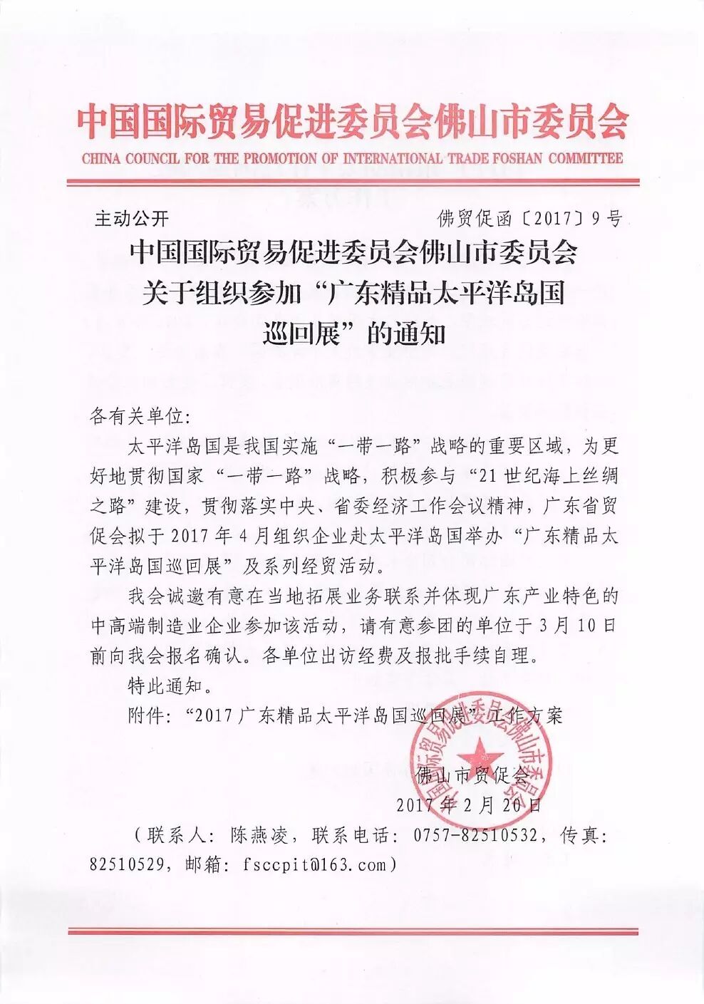 关于组织参加2017年广东精品太平洋岛国展的通知