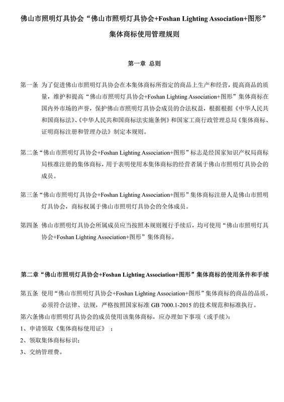 佛山作为商业照明产品生产集中地,聚集一批批优秀的照明生产企业,在市场上已形成了一定影响力。佛山市照明灯具协会通过集体商标的申报,在2020年获得国家知识产权局审批通过,以“佛山市照明灯具协会+Foshan Lighting Association”的集体商标正式成为“佛山商照”的新名片。